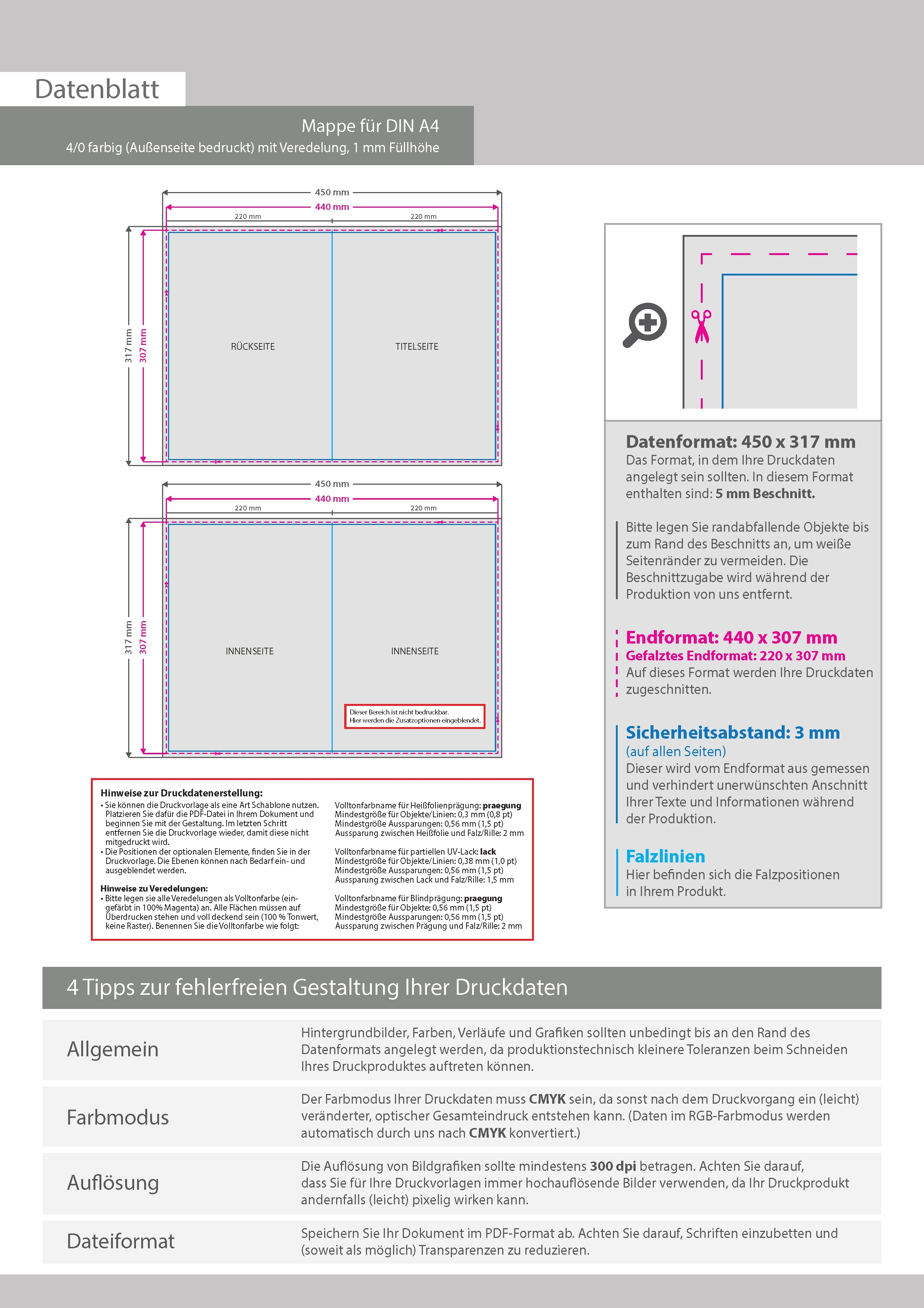 Mappe für DIN A4, 4/0 farbig (Außenseite bedruckt), mit Mattfolie kaschiert