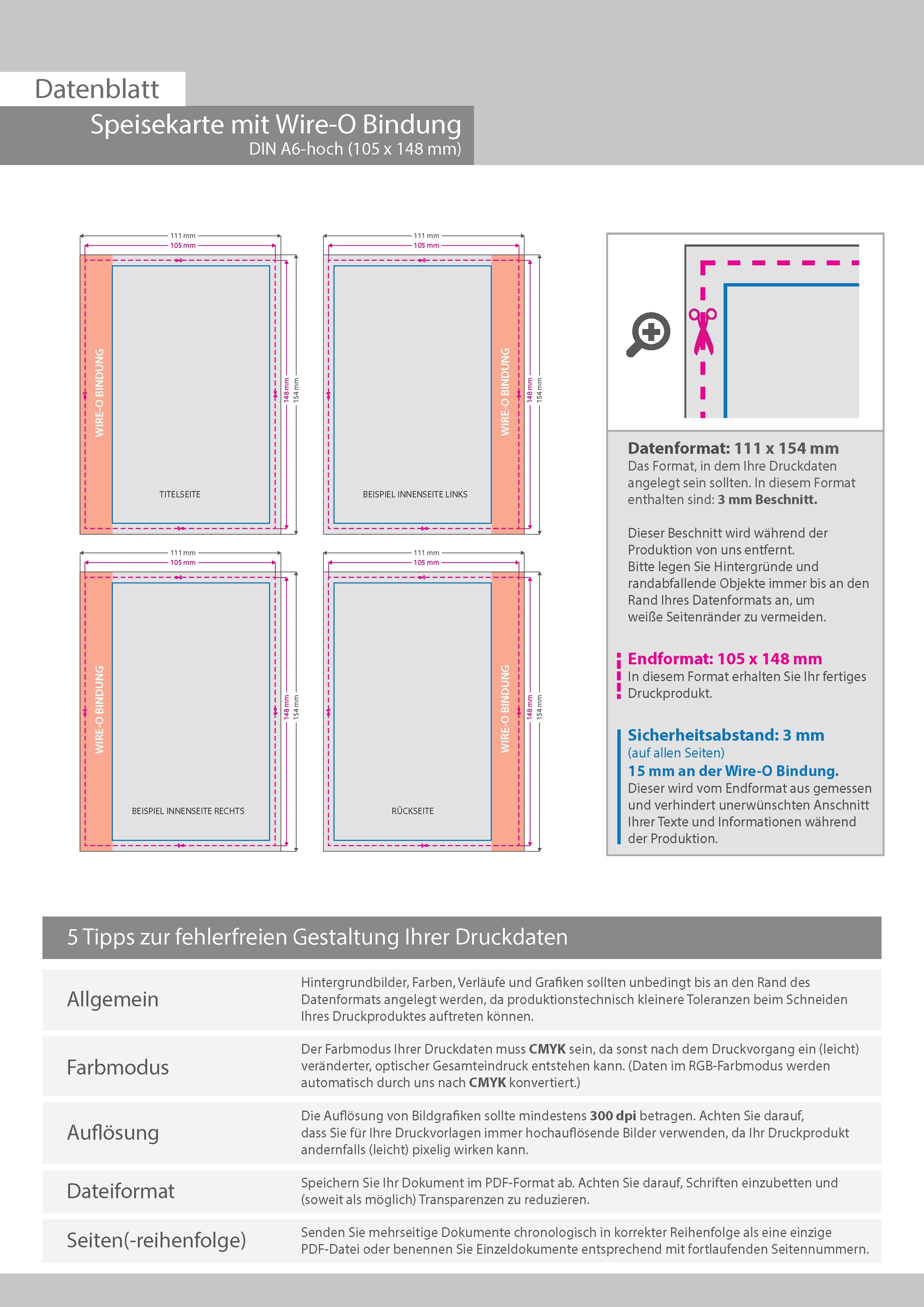 Speisekarte mit Metall-Spiralbindung, Endformat DIN A6, 20-seitig