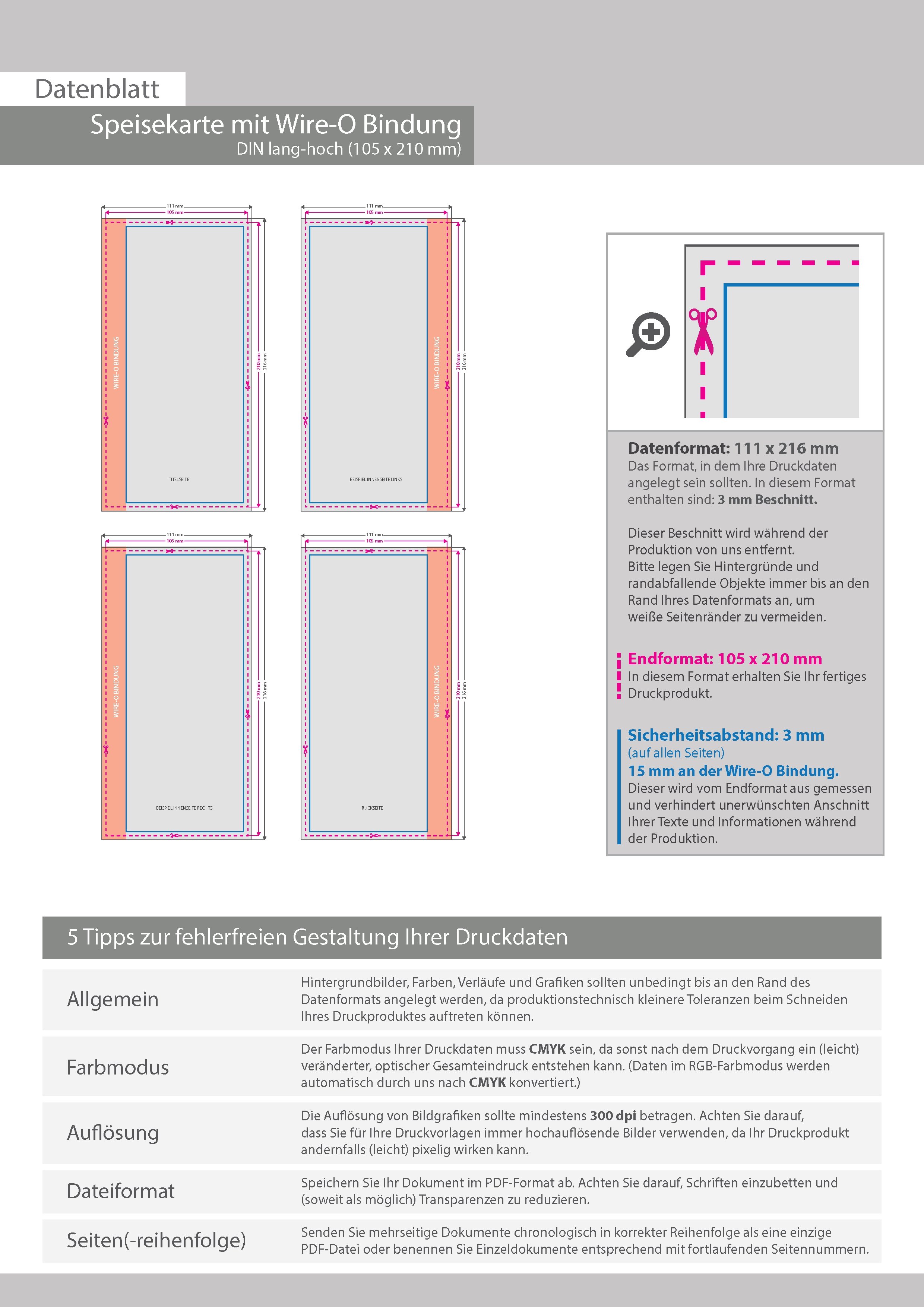 Speisekarte mit Metall-Spiralbindung, Endformat DIN lang, 48-seitig