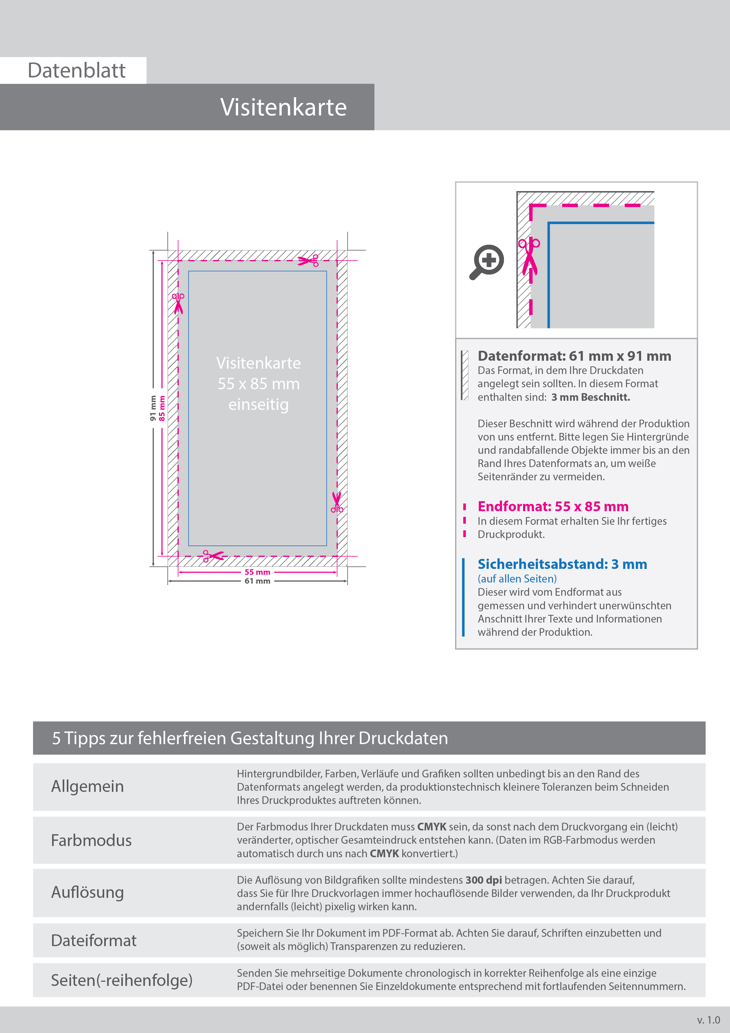 Visitenkarten hoch 4/0 farbig 55 x 85 mm (einseitiger Druck), 300g folienkaschiert matt