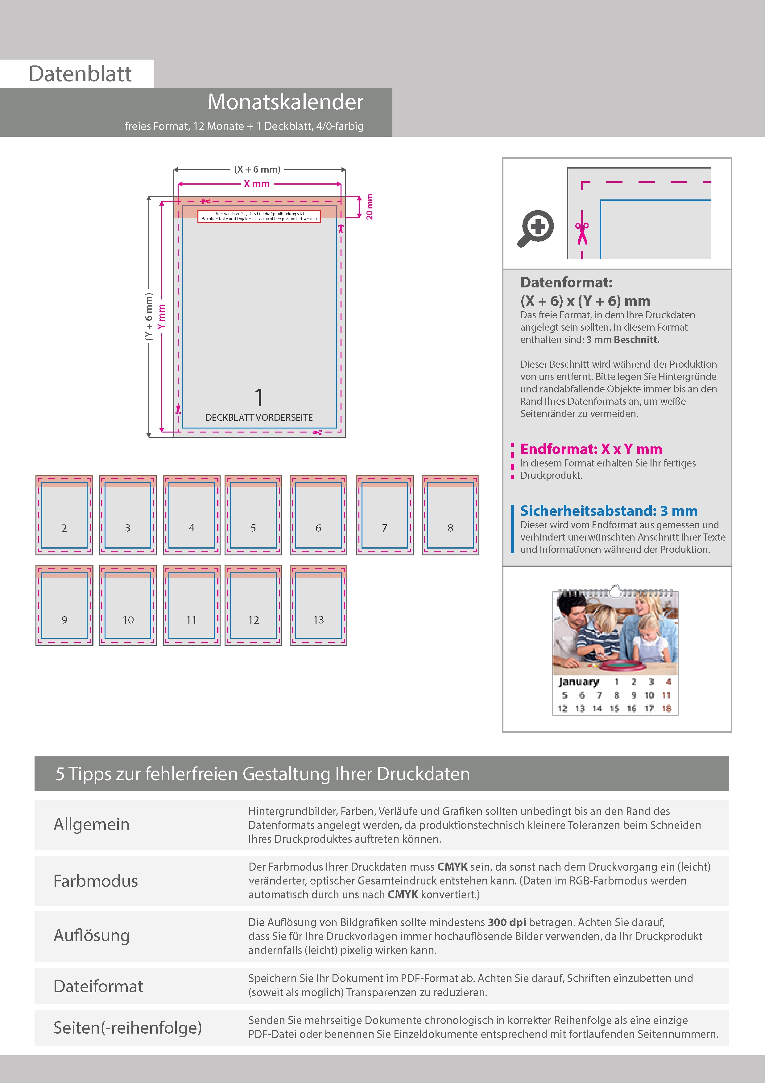 Monatskalender 13 Blatt (12 Monate + Deckblatt)