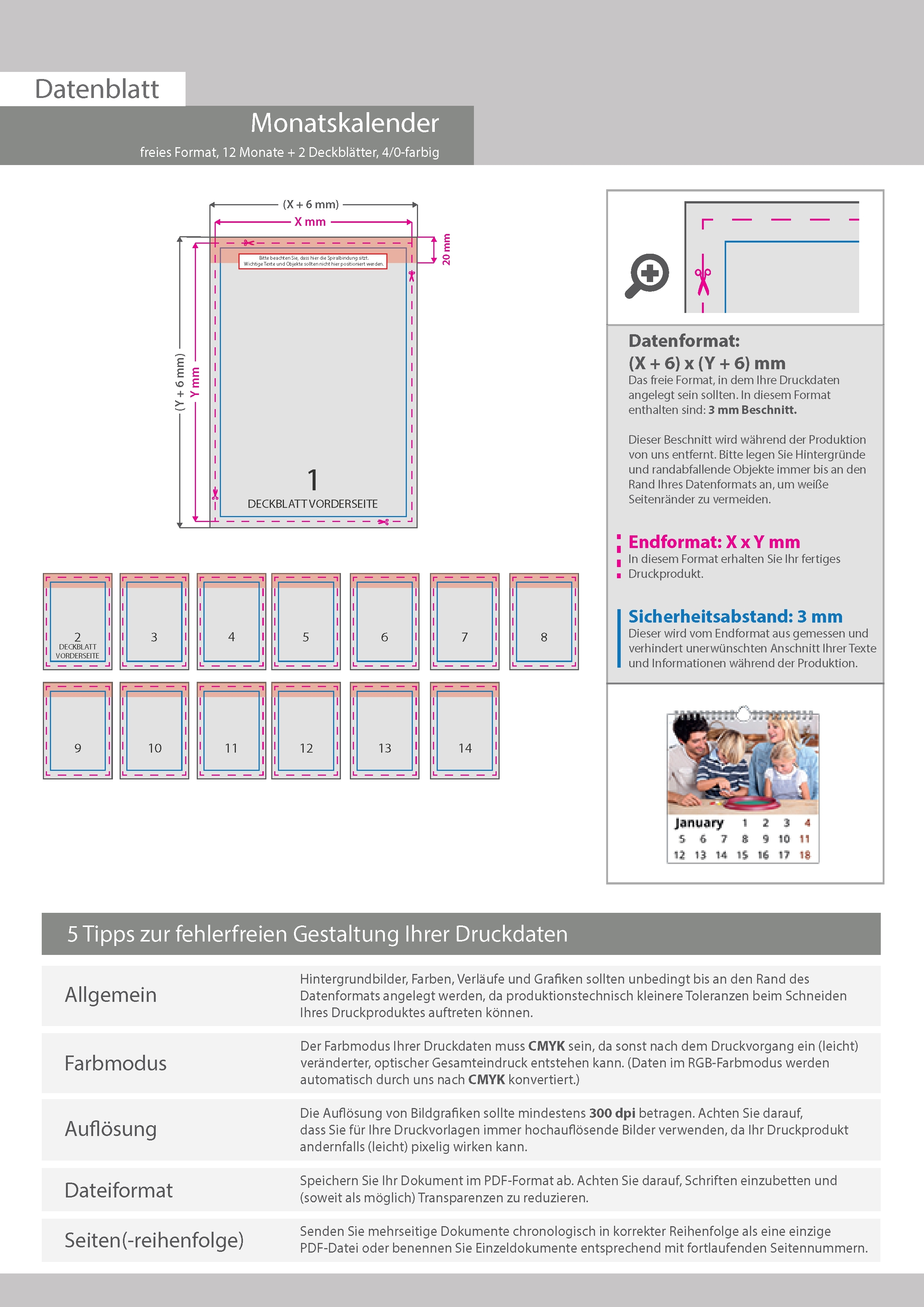 Monatskalender 14 Blatt (12 Monate + 2 Deckblätter)