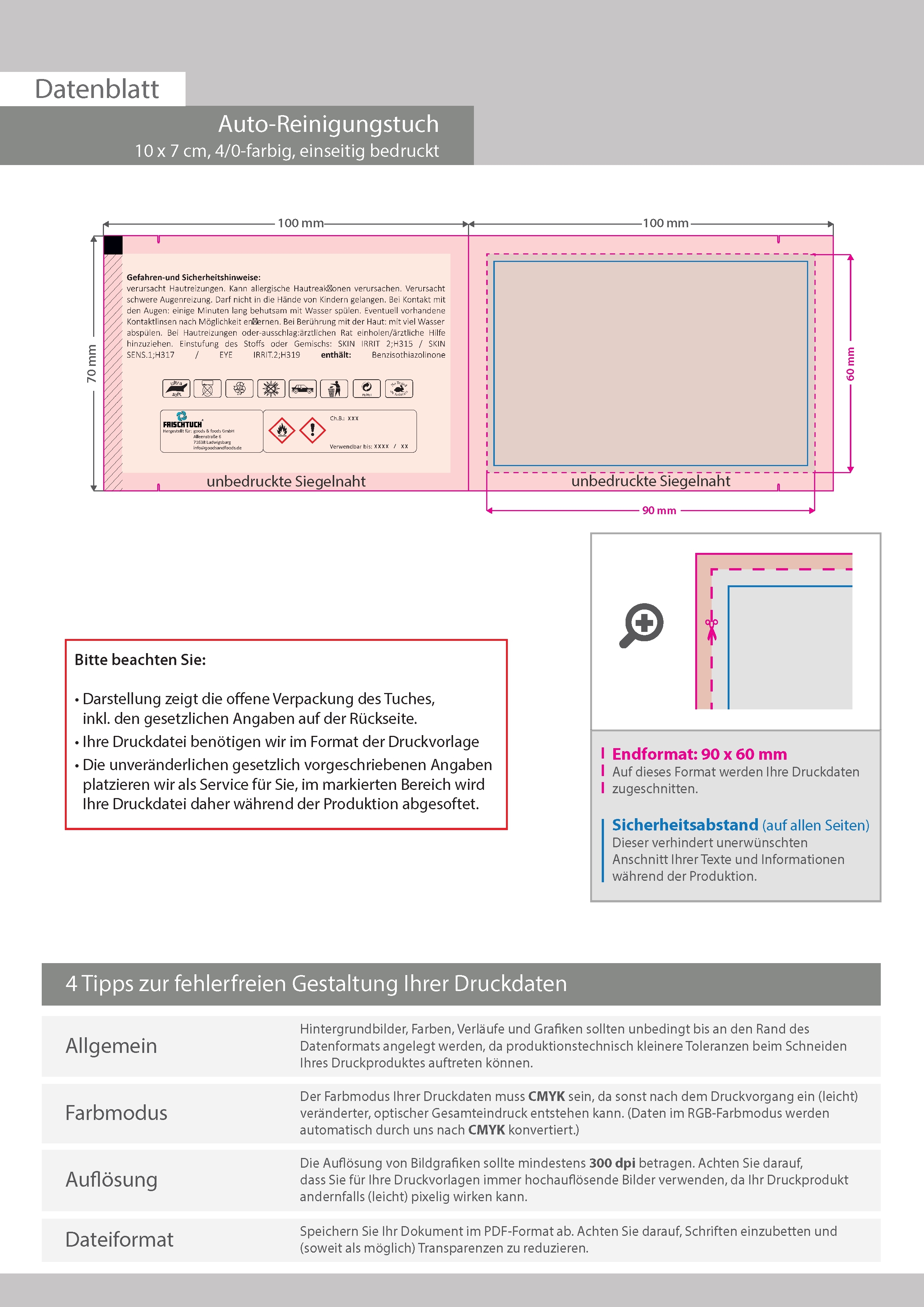 Feuchtes Auto-Reinigungstuch, 10 x 7 cm, 4/0-farbig einseitig bedruckt