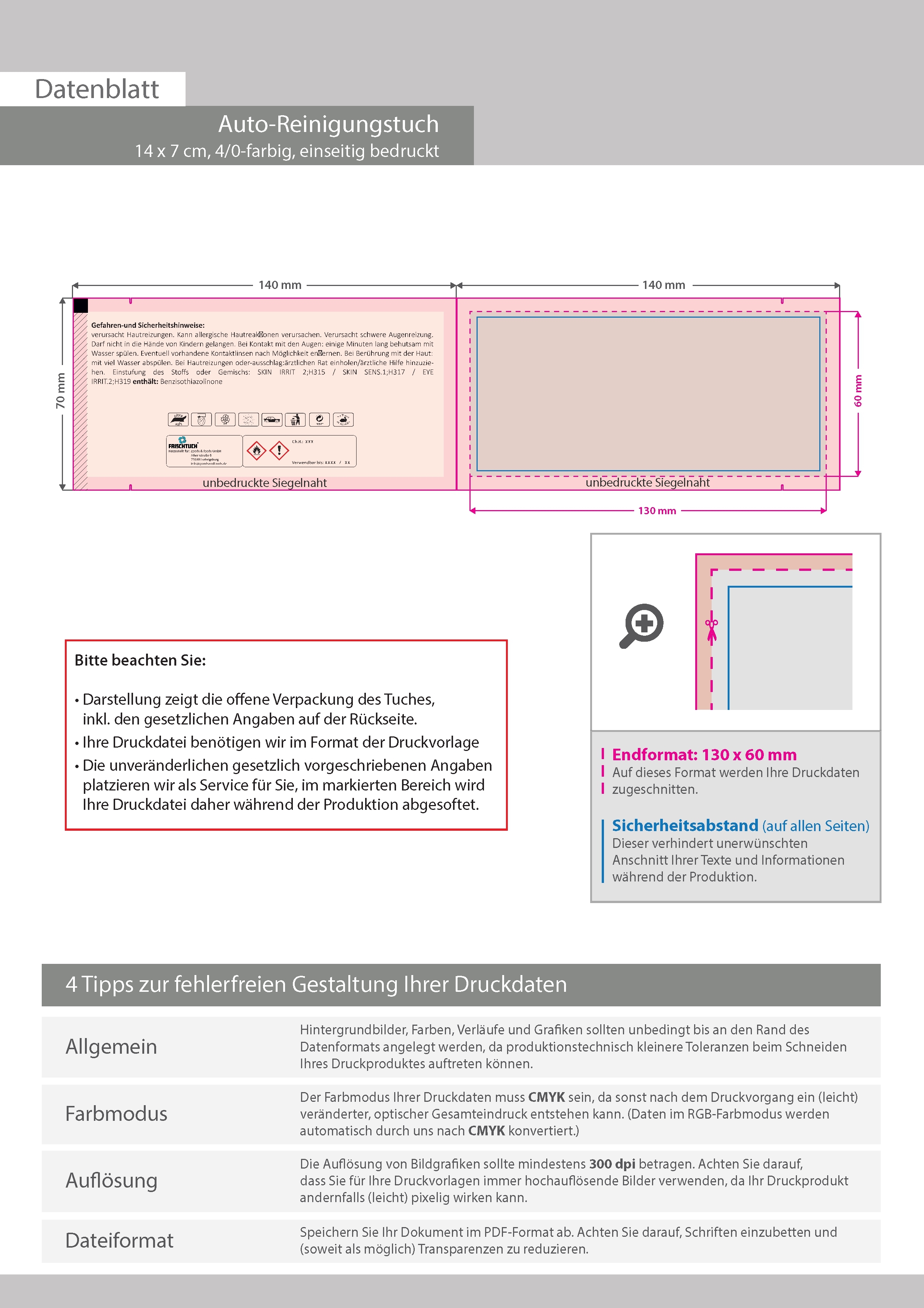 Feuchtes Auto-Reinigungstuch, 14 x 7 cm, 4/0-farbig einseitig bedruckt