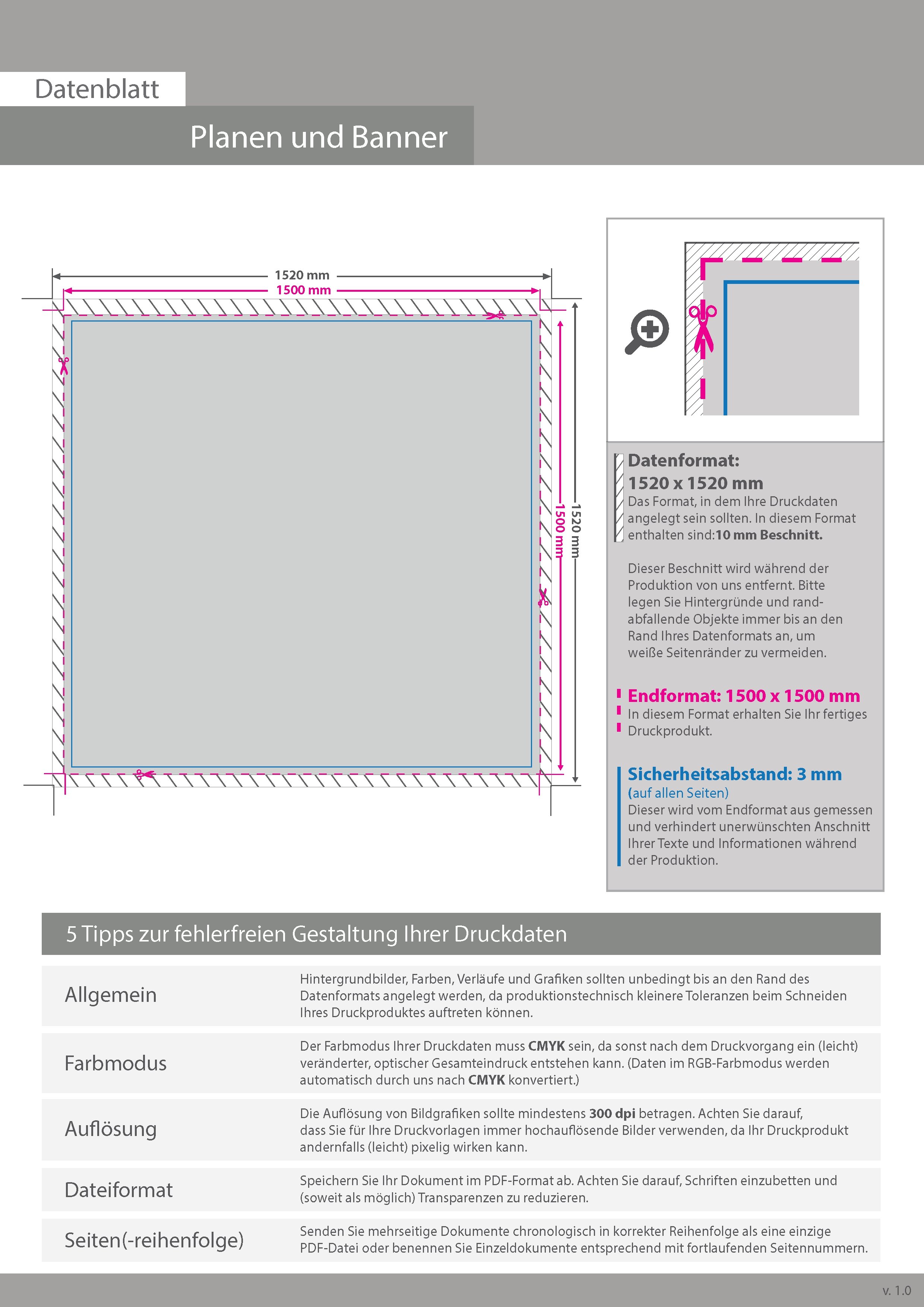 Hochwertige Mesh-Plane 150 x 150 cm, 4/0-farbig bedruckt, plano