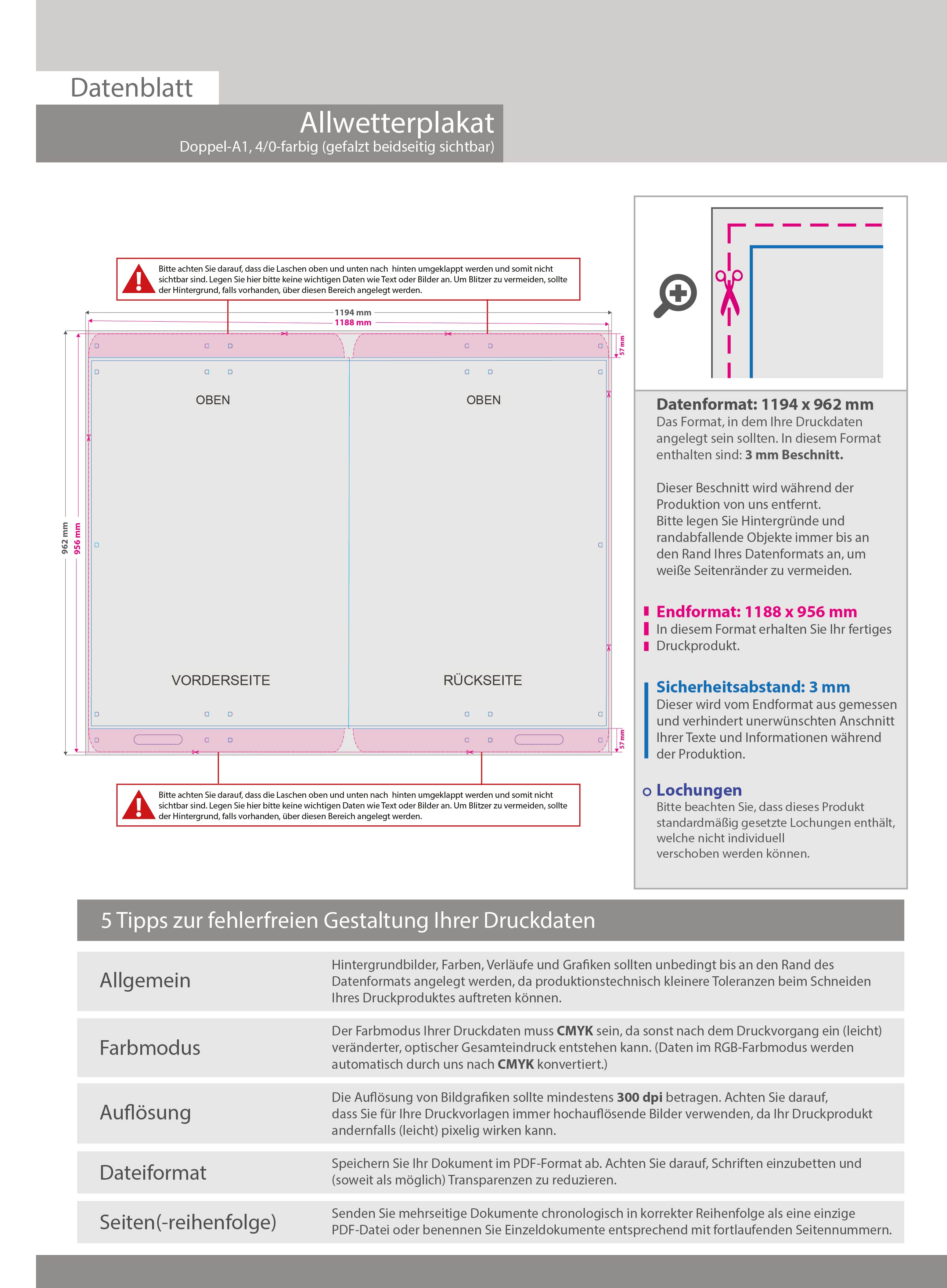 Allwetterplakat Doppel-A1 einseitig 4/0-farbig bedruckt (im Endformat gefalzt beidseitig sichtbar)